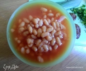 Понадобится любая консервированная фасоль, у меня белая в томатном соусе.