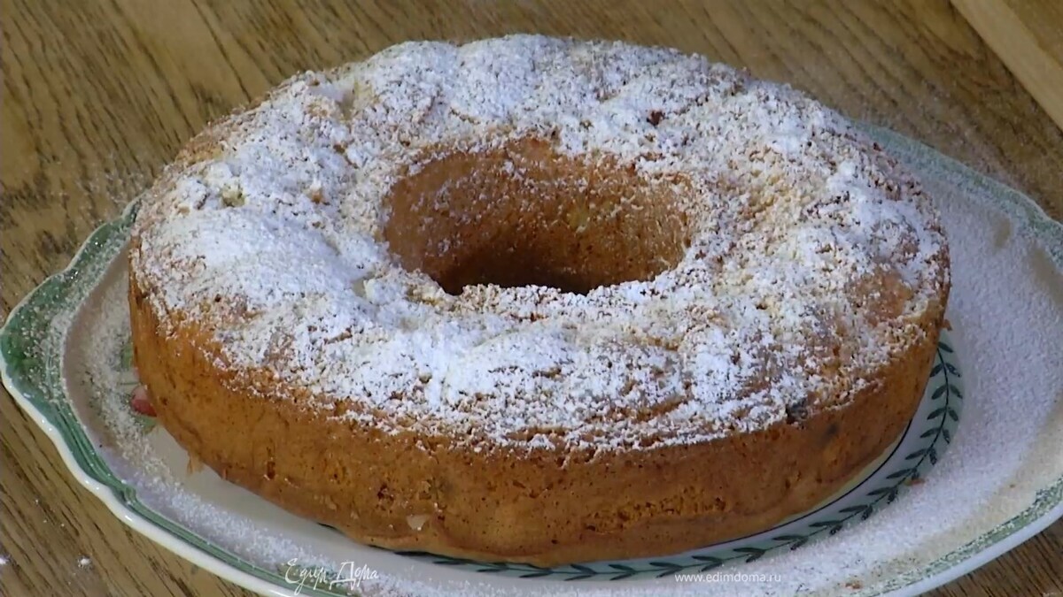 Выпекать торт в разогретой духовке 35–45 минут, затем посыпать оставшейся сахарной пудрой.