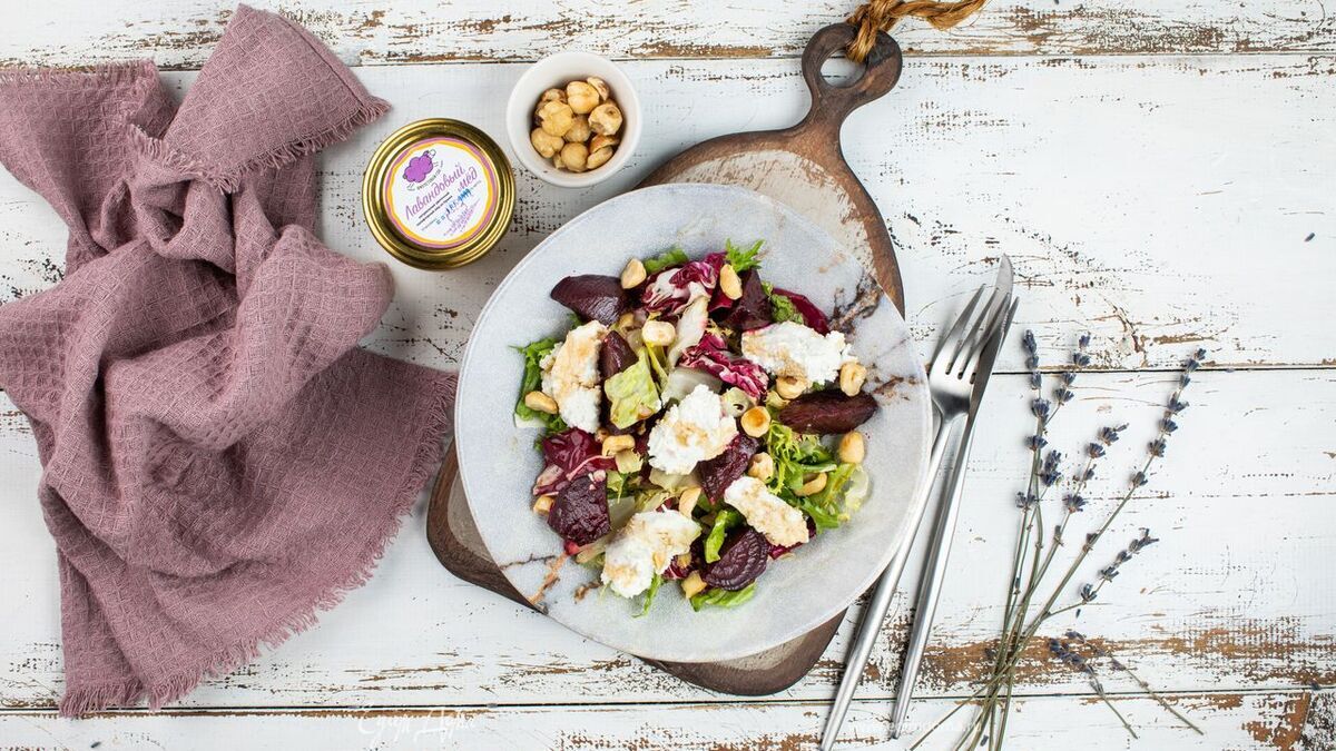 Салат из свеклы и козьего сыра с медовой заправкой