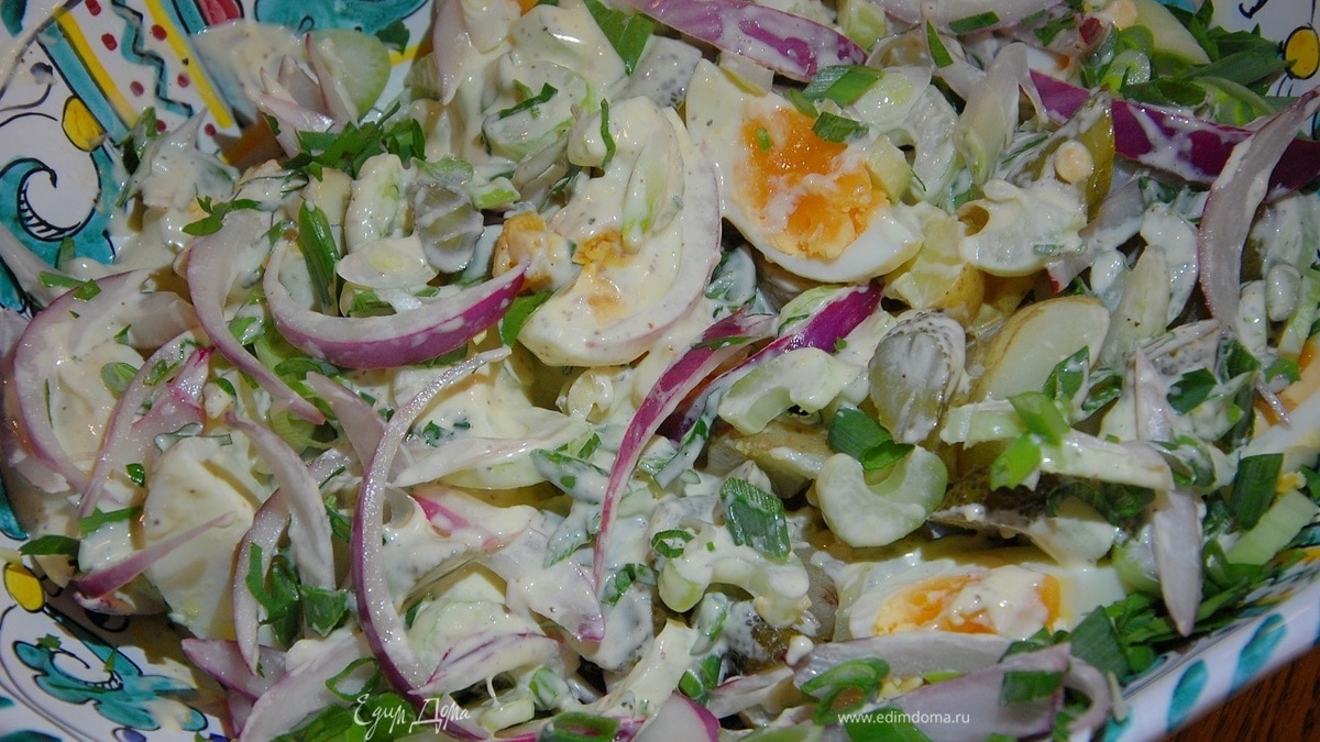 Картофельный салат с яйцами, сельдереем и домашним майонезом