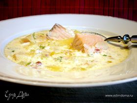 Суповой набор из лосося залить водой, поставить на огонь. - Шаг 2