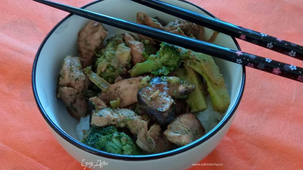 Курица с брокколи и грибами шиитаки