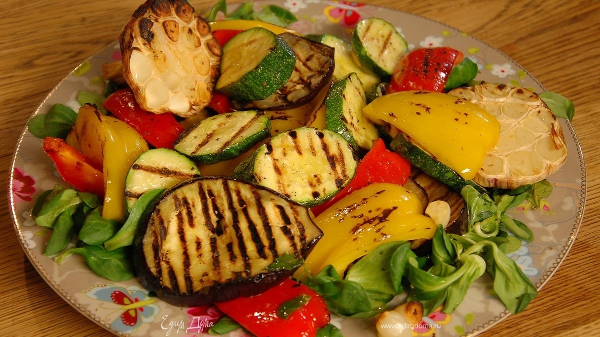 Салат с овощами, обжаренными на гриле