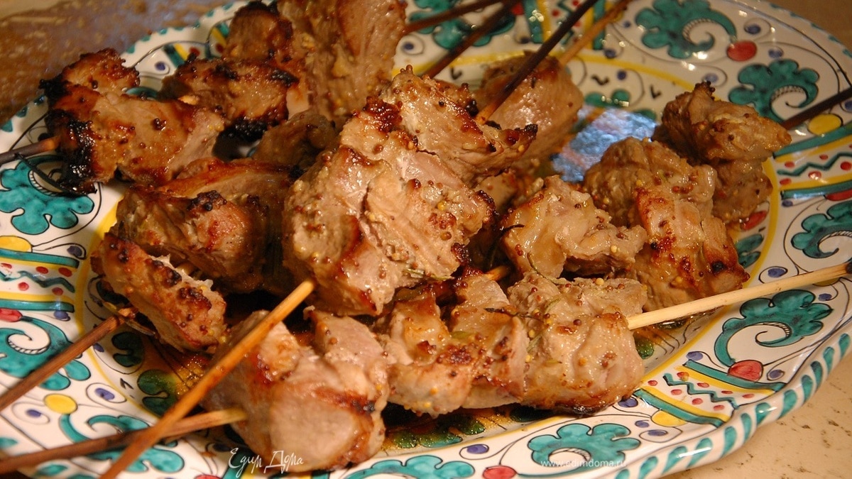 Шашлык, замаринованный с розмарином, чесноком и горчицей