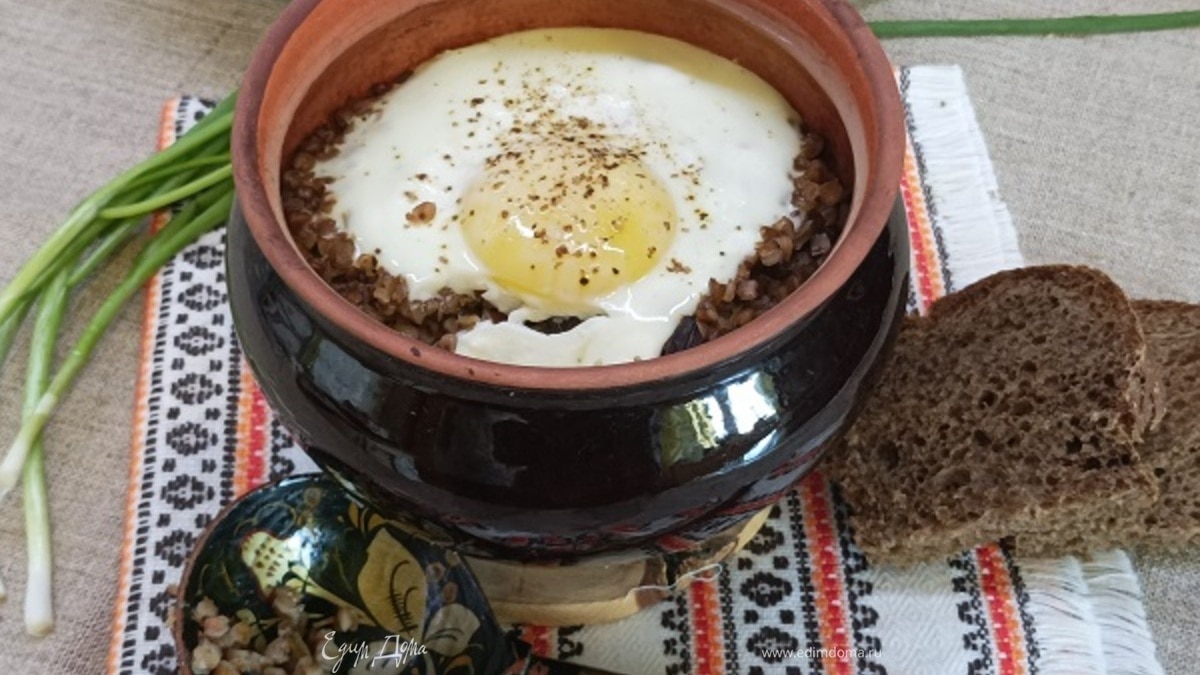 Гречку промыть и разложить по горшочкам, залить водой. У меня был отвар от грибов. Посолить. Накрыть крышками или фольгой и поставить в холодную духовку. Готовить 40–45 минут при 200°C.
