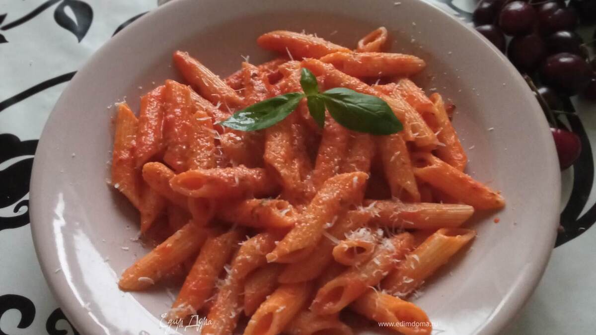 Возвращаем овощное пюре в сотейник, кладем туда макароны, добавляем воду из-под них. Количество воды зависит от густоты вашего пюре. Нужно, чтобы соус обволакивал пасту, но не был жидким. Прогреваем минуты две постоянно помешивая, чтобы макароны пропитались соусом. - Шаг 4