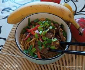 Свинина стир-фрай с яичной лапшой