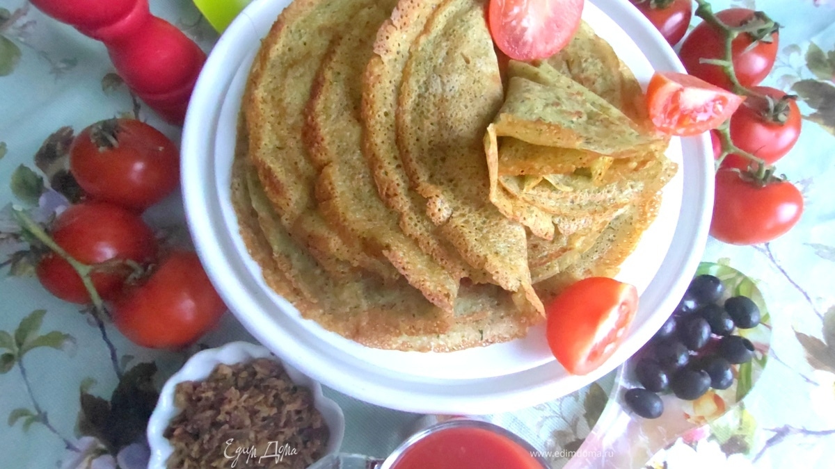 Несладкий вариант блинчиков — мегаароматных, тонких, с хрустящими краешками. Можно в пост. Подаем вместо хлеба к супу или заворачиваем начинку.