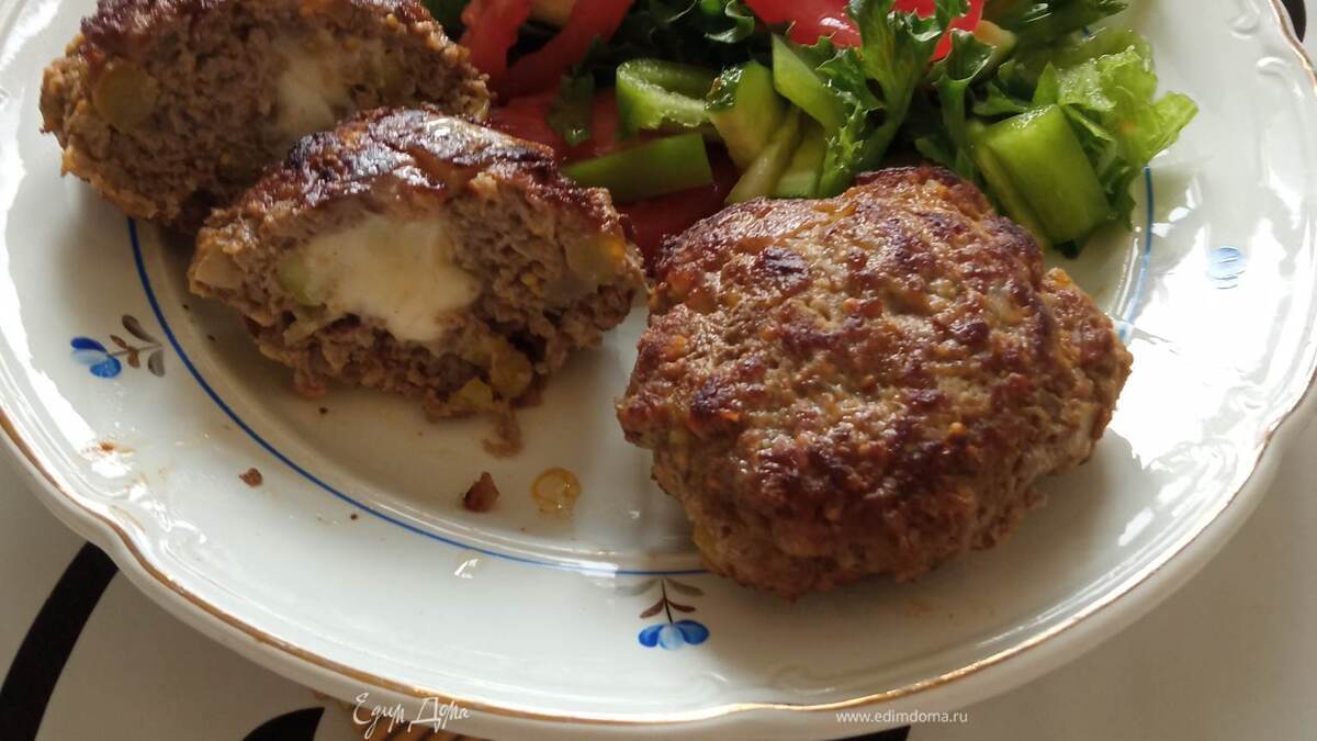 Тем временем готовим овощной салат по вашему вкусу. Вынимаем зразы из духовки и подаем с салатом. Приятного аппетита!