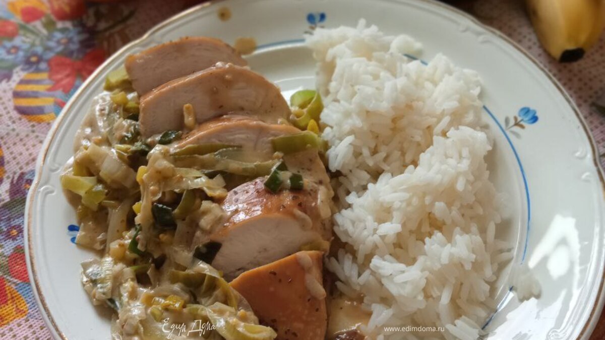 Куриная грудка с луком-пореем