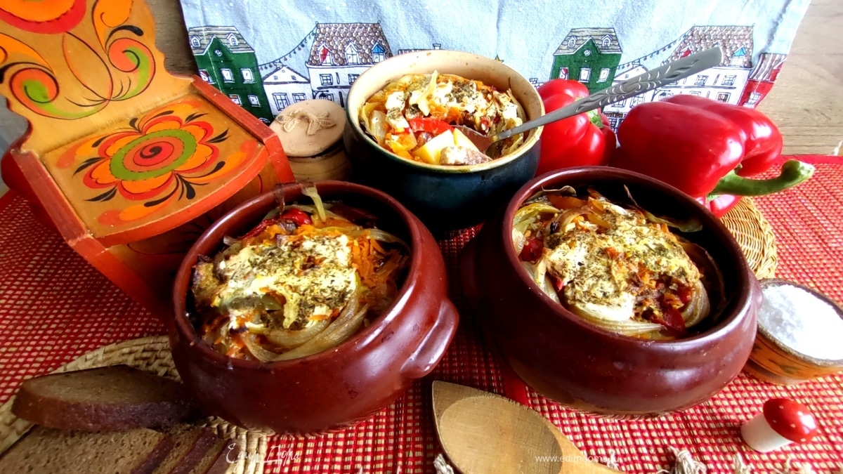 Мясо с овощами в горшочках