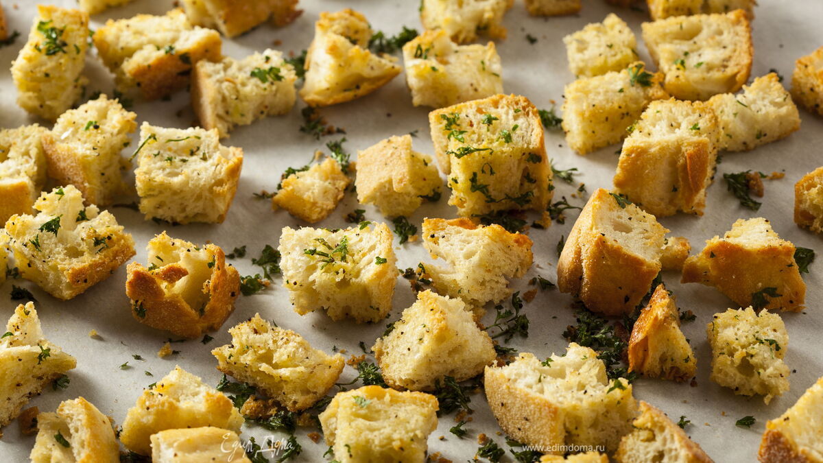 - Шаг 5Используйте ароматные сухарики для салата «Цезарь», супов-пюре и других домашних блюд. Будет очень вкусно!