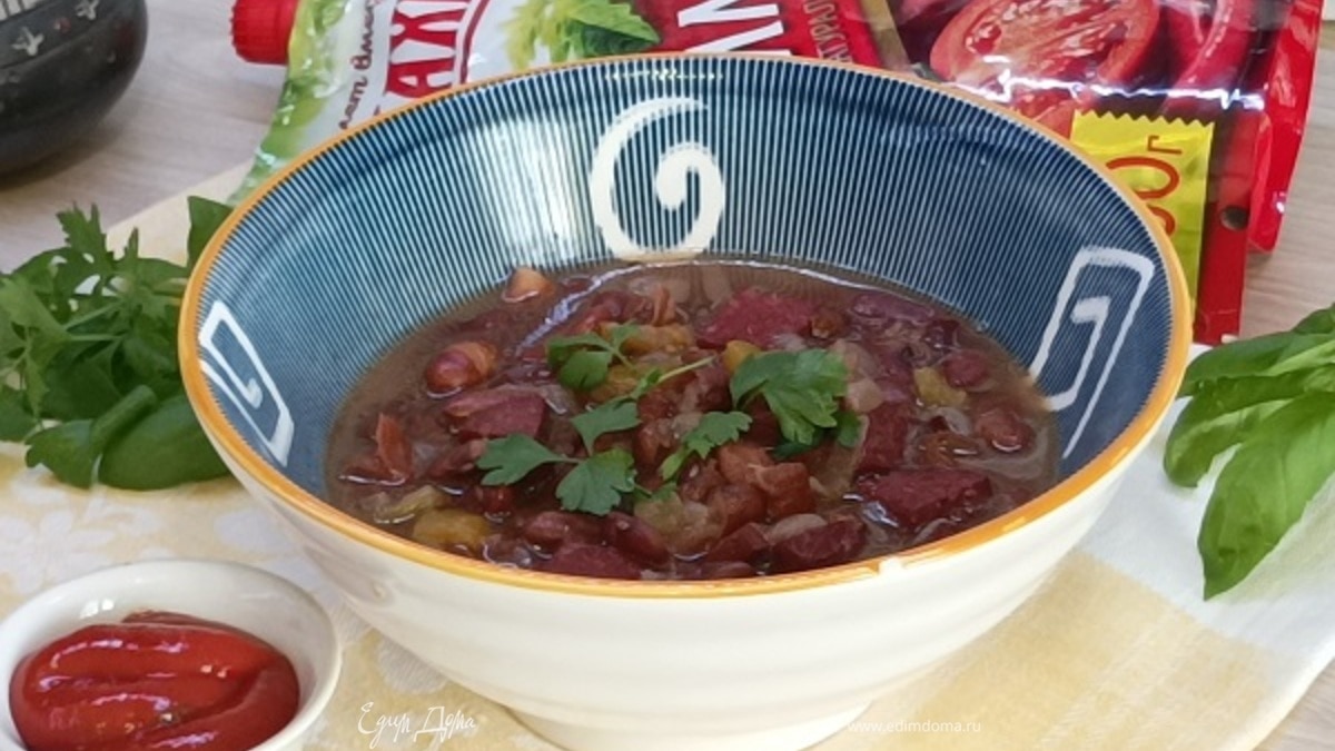 Долго? Но чем больше томится фасоль, тем насыщеннее становится блюдо. Подаем с кетчупом чили ТМ «Махеевъ».