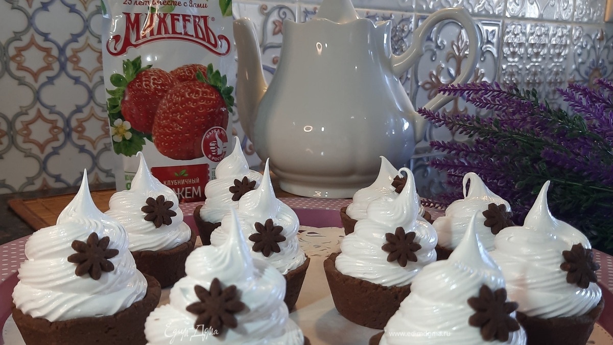Корзиночки с клубничным джемом и белковым кремом