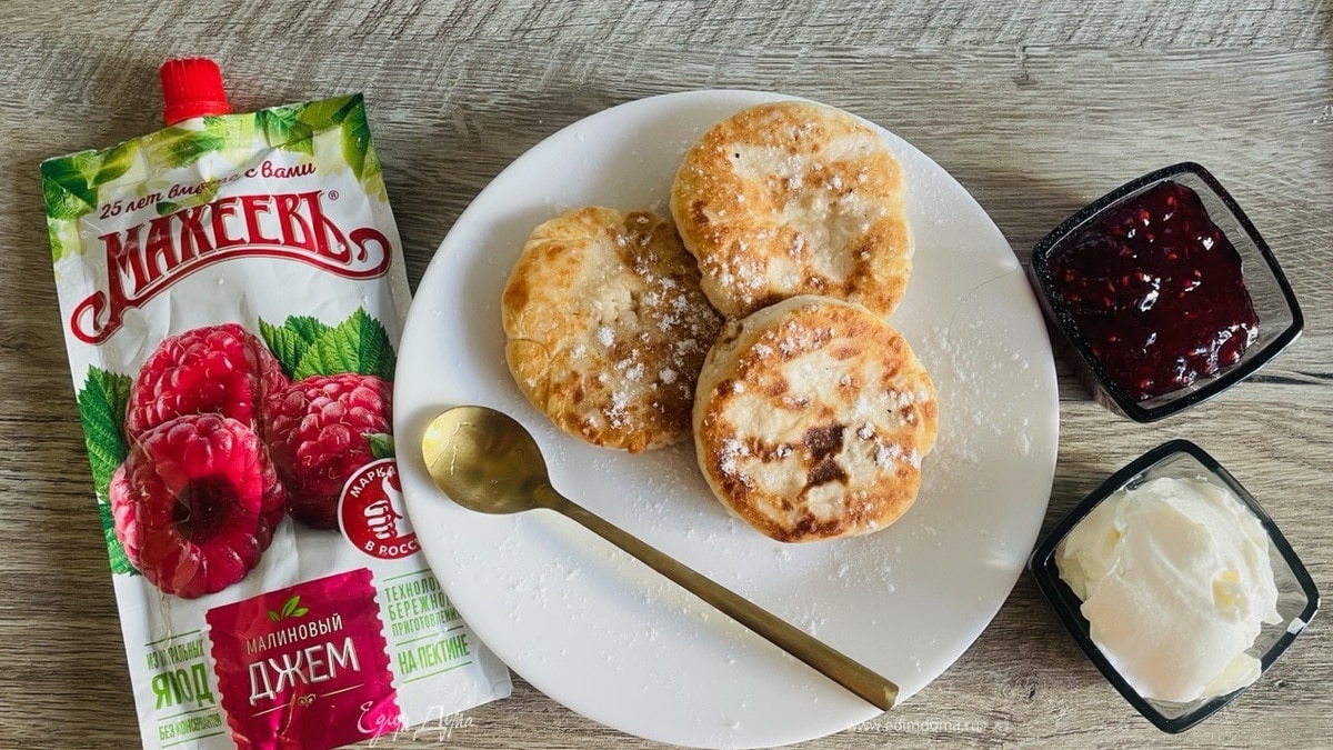 Сырники я приготовила с малиновым джемом ТМ «Махеевъ», используя его вместо сахара, добавив к основным ингредиентам. Продукции «Махеевъ» — 25 лет! Качество, проверенное годами! Желаю быть всегда лучшими в России, вдохновляя на новые кулинарные шедевры!