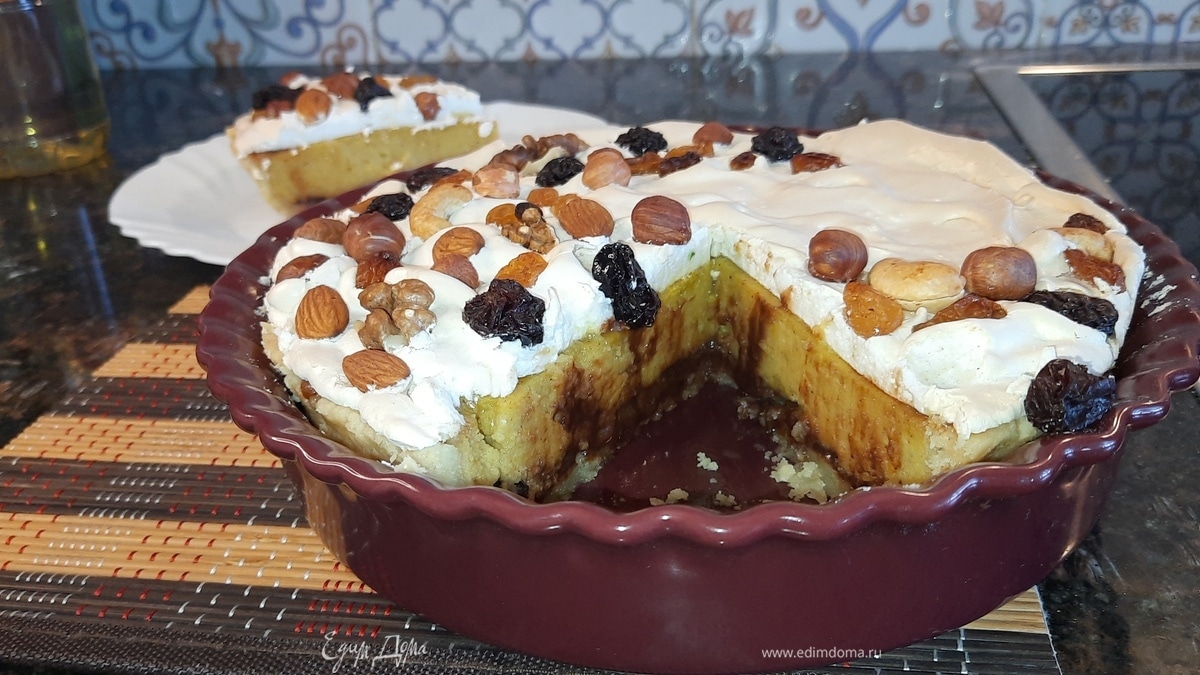 Распределите меренгу по поверхности пирога и по желанию украсьте орешками, изюмом или цукатами. - Шаг 16