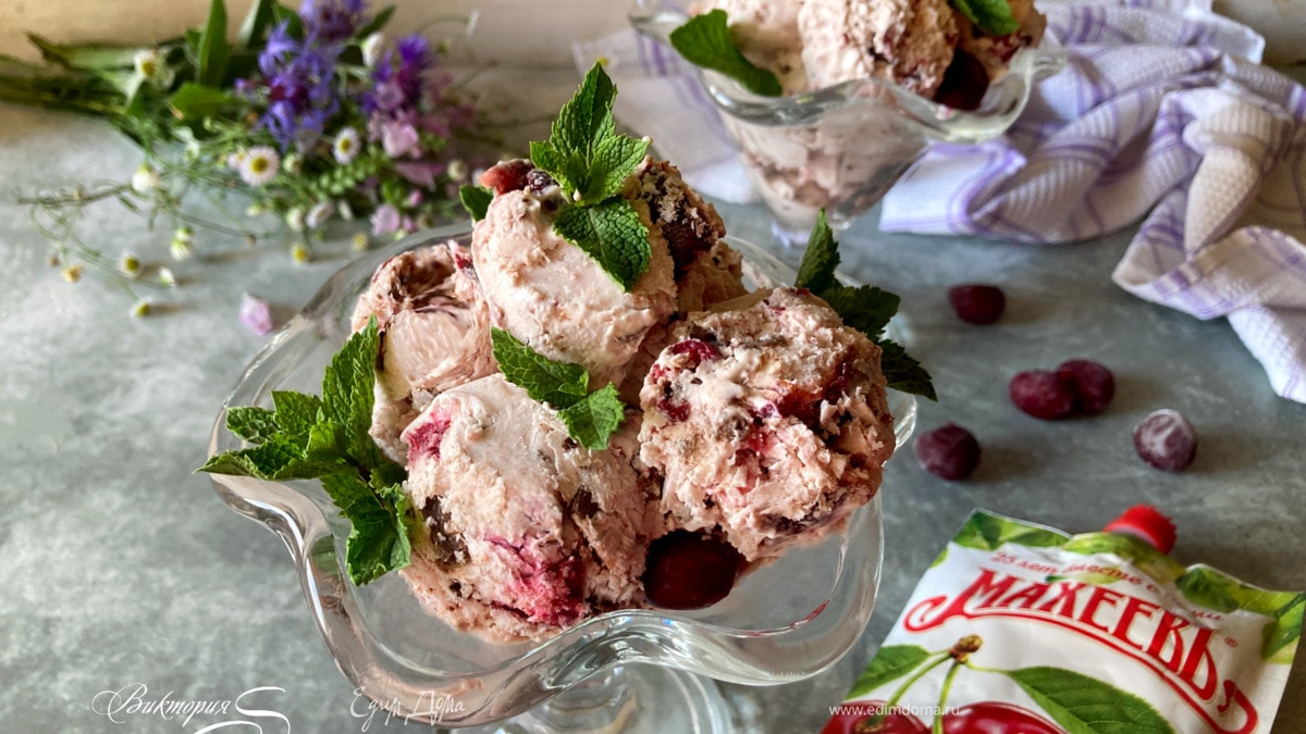Подавайте мороженое с листиками мяты. Приятного вам аппетита!