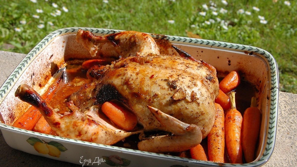 Курица сумах, запеченная с молодой морковью