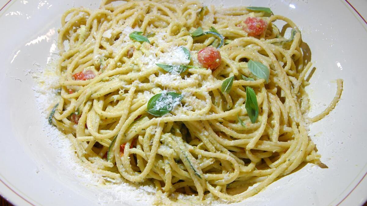 Паста с цукини и соусом из авокадо и тахини