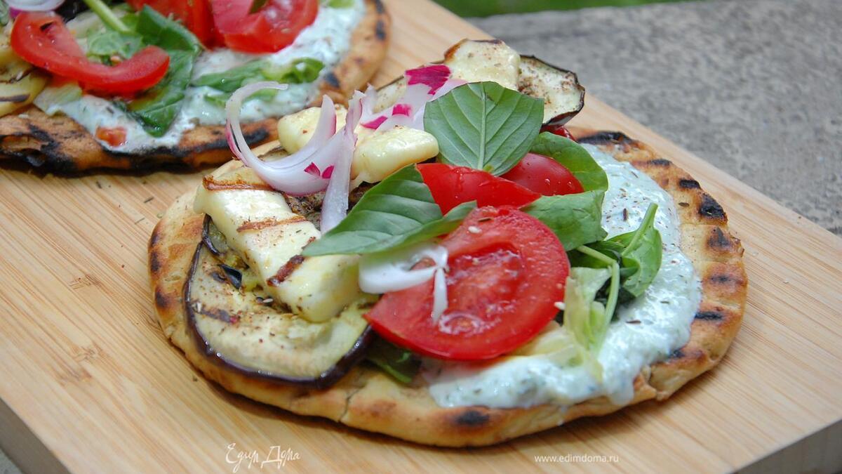 Баклажаны на пите с соусом дзадзики