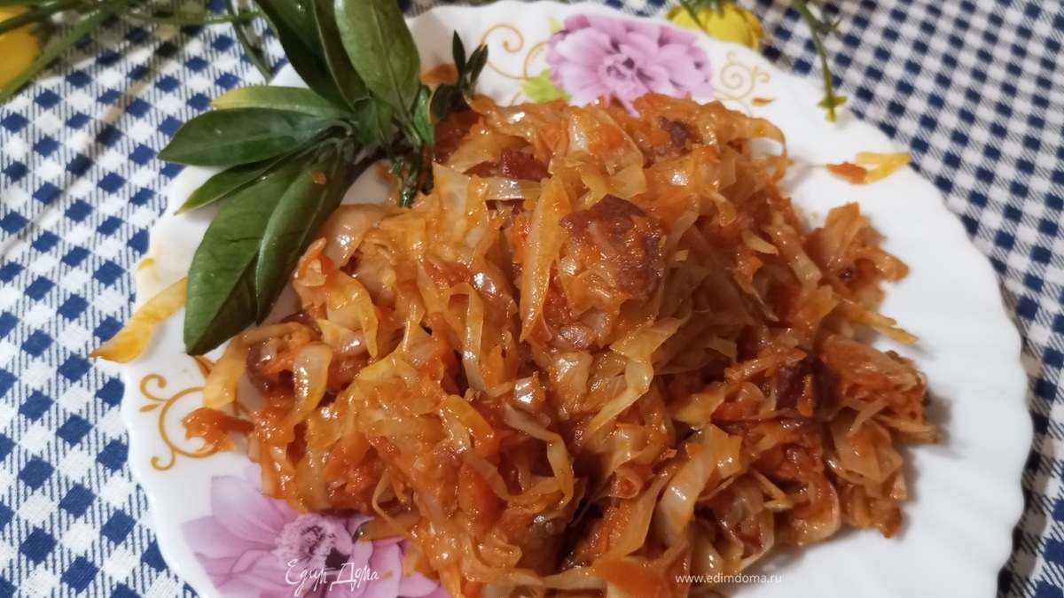 Готовить под крышкой, помешивая, до полуготовности капусты. Посолить, добавить перец и лавровый лист. - Шаг 5