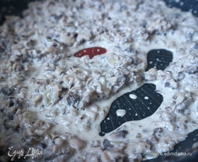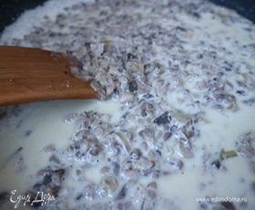 Добавить сливки, советую брать нежирные, так блюдо получится нежнее. У меня здесь 10% сливки.