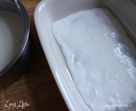 Духовку разогреть до 180°C. Смазать оливковым маслом дно и бортики керамической формы. На дно формы вылить примерно половник соуса бешамель.