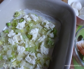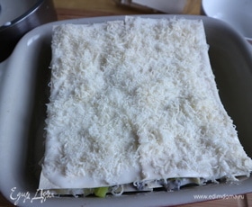 Лук-порей, моцарелла, пармезан. Следующие слои в том же порядке.