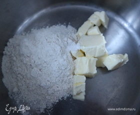 Перемешать муку и масло. У нас получилась смесь, которую принято называть ру (roux).