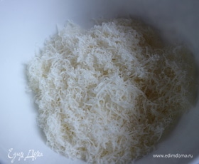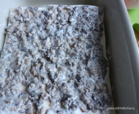 Верхний слой: на листы теста для лазаньи поместить соус бешамель, посыпать пармезаном.
