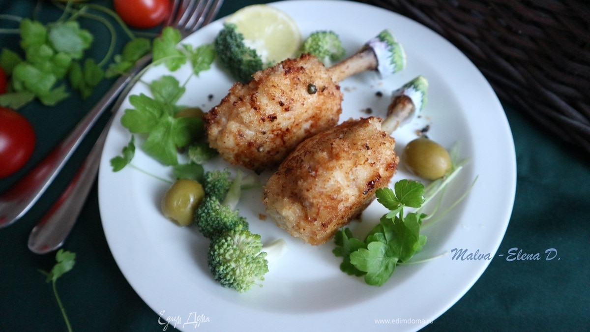 У меня из одной курицы получилось шесть котлет на косточке и пять без них. Подавать сразу после приготовления. - Шаг 10