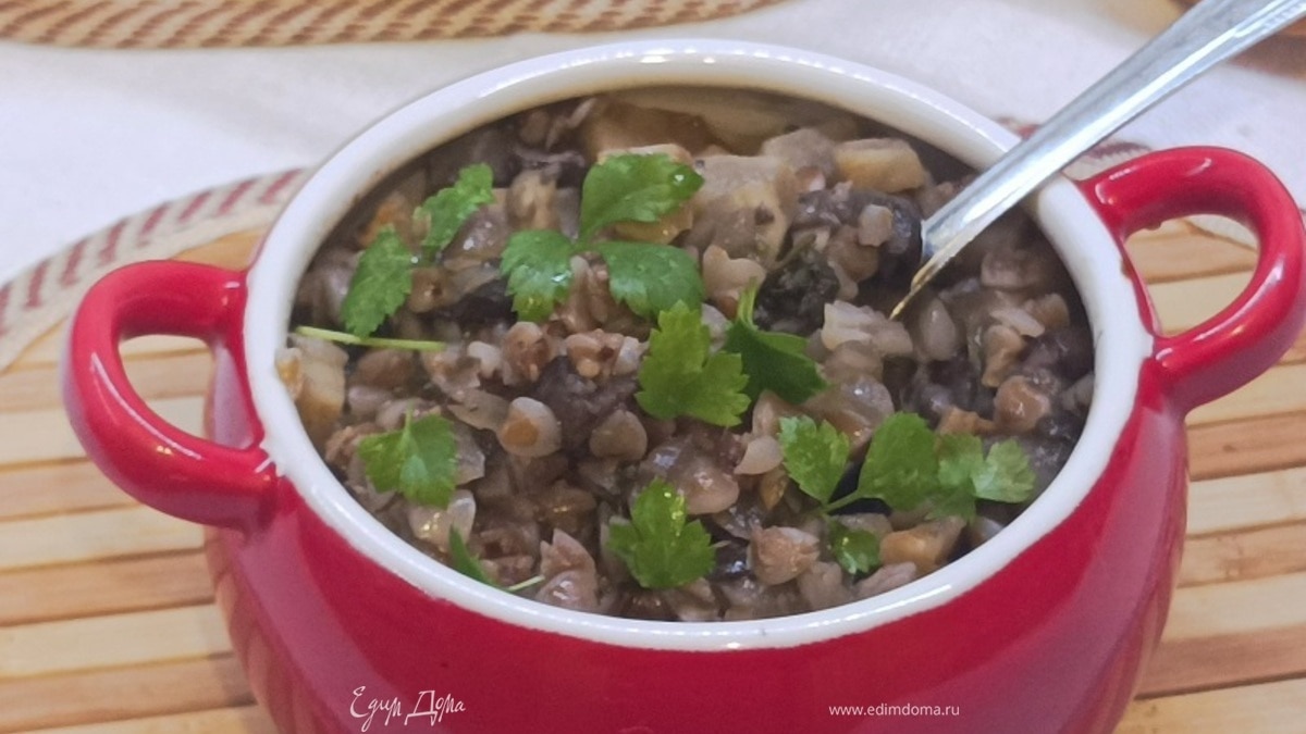 Гречневая каша с грибами в горшочках