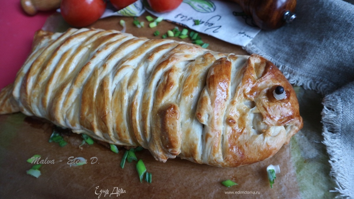 Рыбники бывают открытые и закрытые, форма их разнообразна, часто они имеют овальную форму. Переплетение косичкой очень удобно: в тесте остаются свободные промежутки, которые при выпечке дадут выйти пару, не надо будет делать проколы или разрезы. Как оформить рыбку в тесте, вам подскажет фантазия. Каких только нет вариантов!
