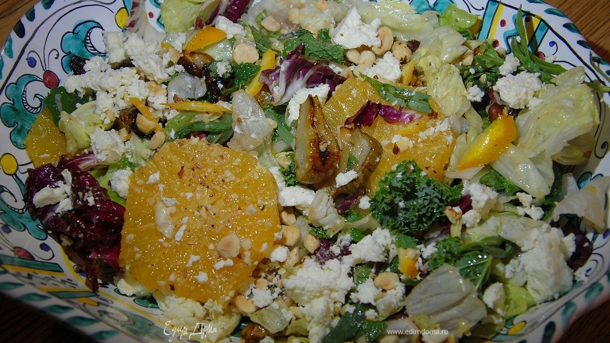 Салат с топинамбуром, апельсином и фетой