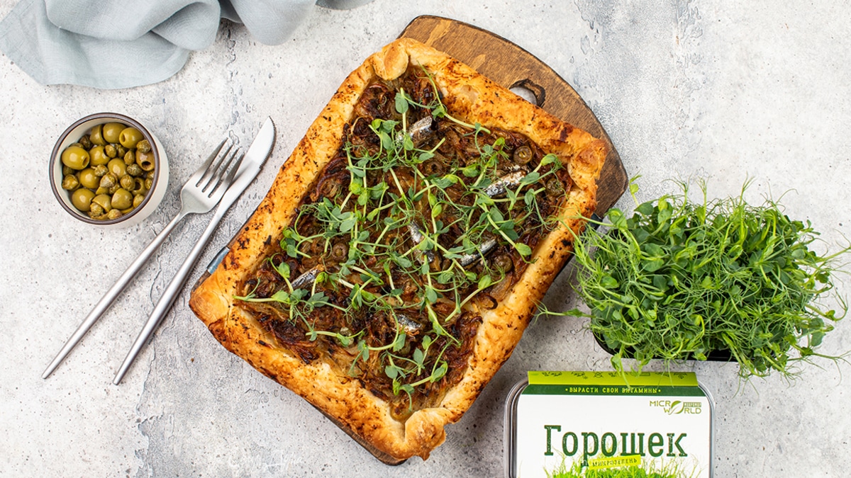 Сочный луковый пирог с микрозеленью