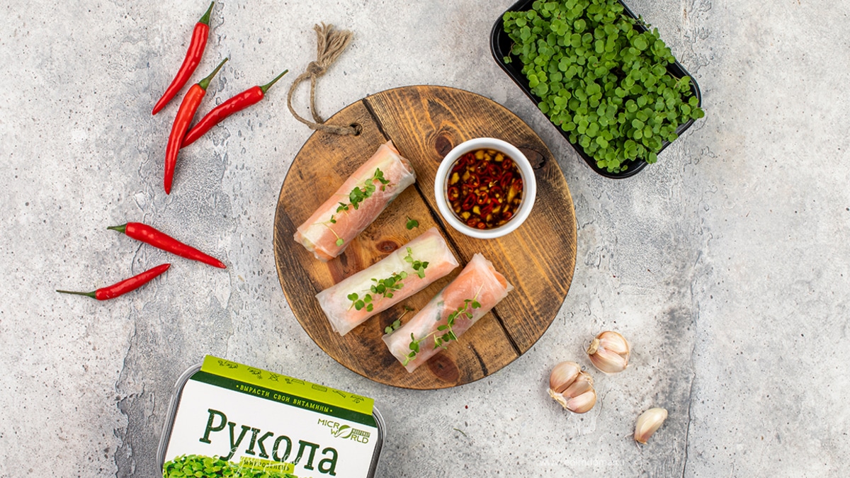 Спринг-роллы с лососем, огурцом и микрозеленью готовы. Приятного аппетита!