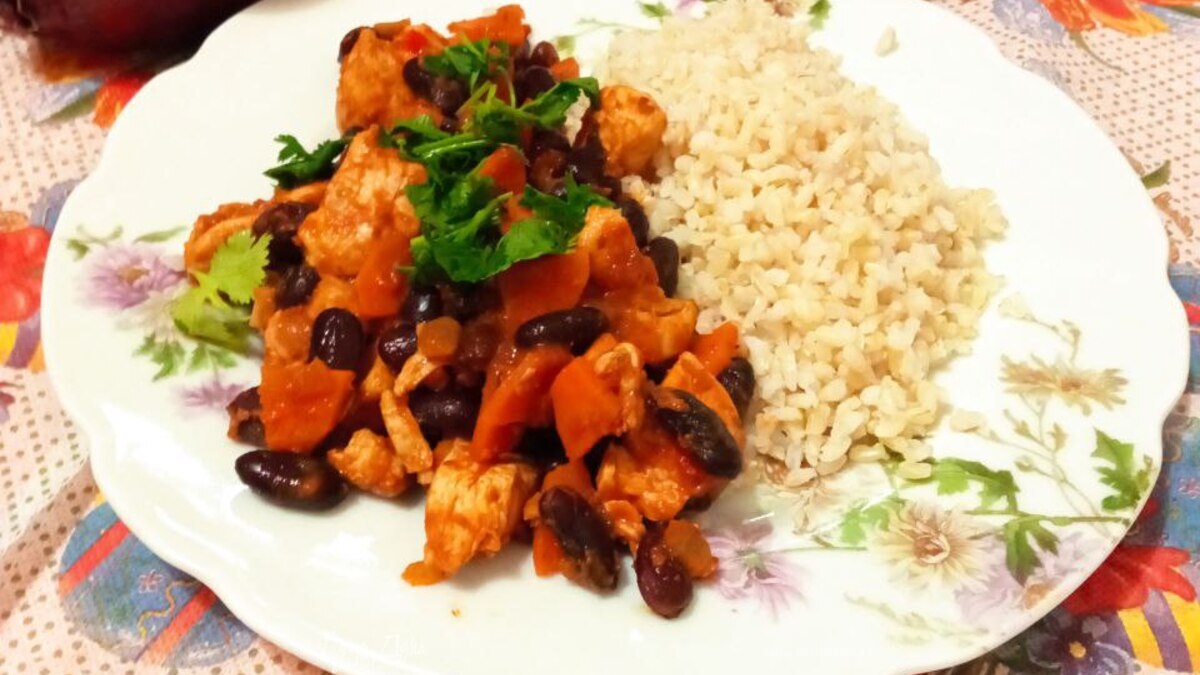Вместо тростникового сахара можно использовать простой рафинад. Это блюдо кажется мне достаточно брутальным, поэтому на гарнир я приготовила бурый рис. Но гарнир может быть любой на ваш вкус. Можно обойтись без гарнира, тогда рекомендую взять больше фасоли и моркови. Можно взять фасоль из банки, тогда блюдо будет нежнее, но потеряет всю романтику американских дорог (шучу). Также вместо курицы можно использовать любое другое мясо. Полная свобода вашему творчеству.