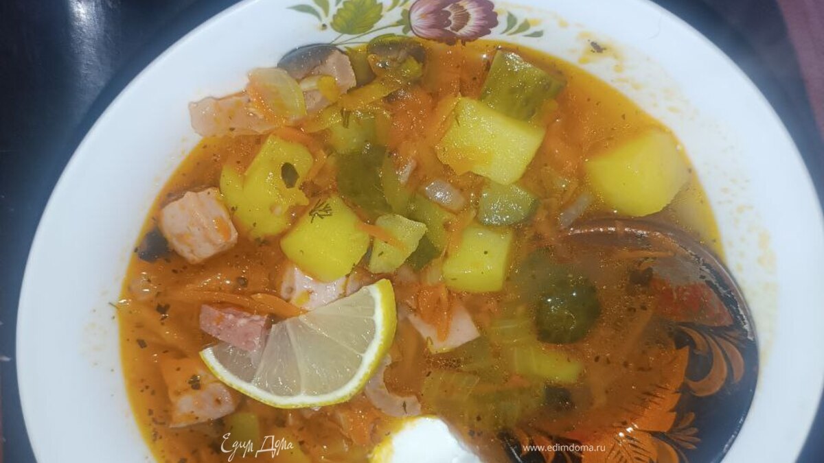 Пошел на обеде в столовую, там в меню сегодня была солянка, но мне не хватило — долго шел до столовой. Пришлось брать щи. Вот тут я психанул и после работы приготовили с Мусей свою солянку!