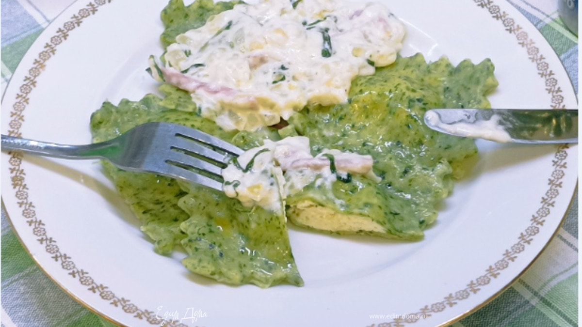 Зеленые равиоли с чесночным соусом
