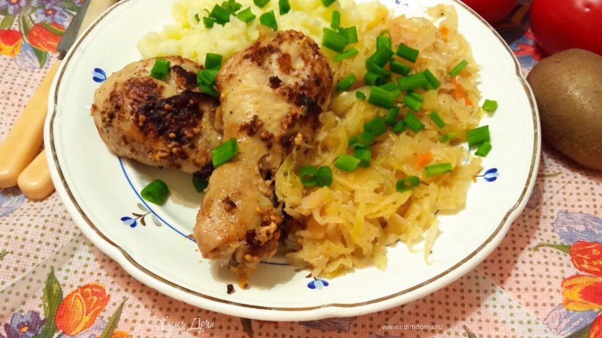Подаем голени с картофельным пюре и капустой, посыпав зеленым луком. Приятного аппетита!