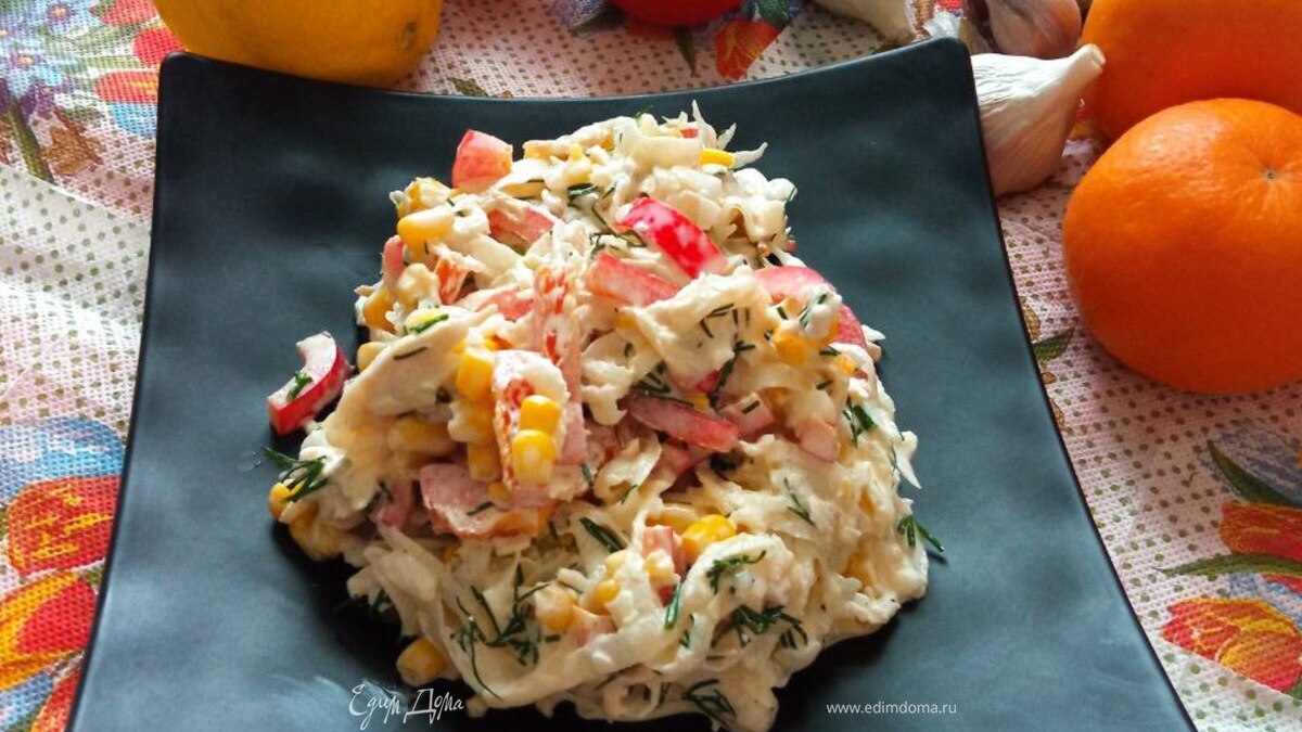 Куриное мясо разбираем на волокна, дайкон чистим и трем на крупной терке. Хорошенько отжимаем дайкон. Кладем в миску к курице. - Шаг 3Перец нарезаем соломкой, укроп мелко шинкуем. Добавляем кукурузу. Солим и перчим по вкусу. Заправляем майонезом. Салат готов. При подаче можно посыпать мелко нарезанным зеленым луком. Но это по желанию. Приятного аппетита!