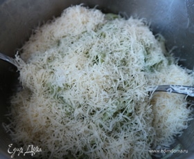 Очередь сыра. Немного сыра (примерно 15 грамм от общего количества) надо оставить, его добавляют при подаче блюда. Добавить пармезан к феттучине.
