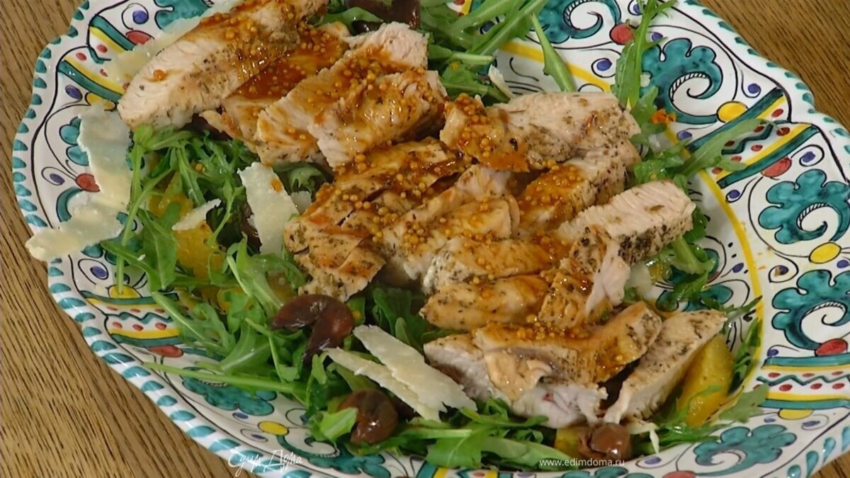 Салат лучше употреблять сразу после приготовления — свежая рукола и оливки быстро теряют хрусткость. Если нужно приготовить заранее, обжарьте индейку и нарежьте ингредиенты, но заправьте и перемешайте салат непосредственно перед подачей. Храните компоненты отдельно в холодильнике до 1 дня. Для более яркого вкуса можно добавить в заправку немного сока лайма.Оценить52