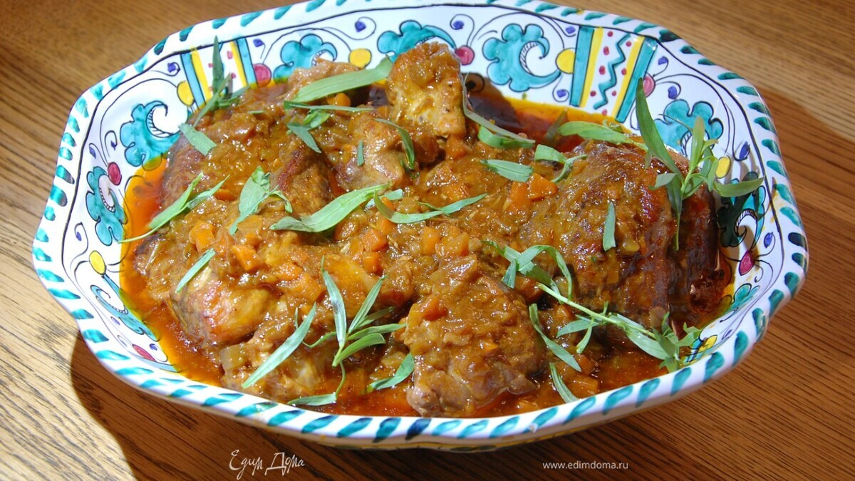 Свинина, томленная с овощами в красном вине