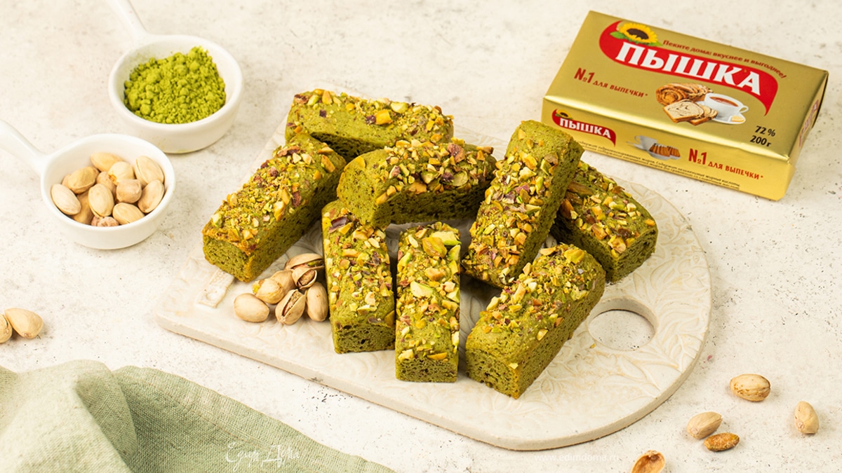Печенье финансье с матчей и фисташками