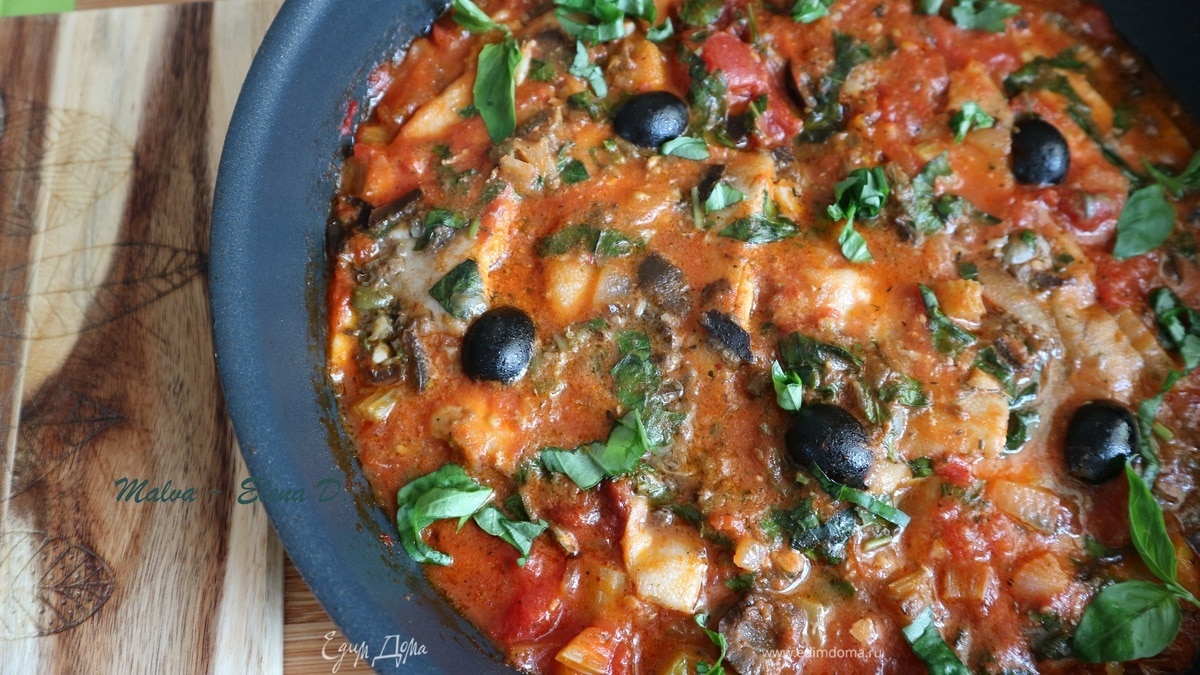 Для маринования рыбы использовала тапенаду. Рыбу предварительно не обжаривала, она проводит на сковороде в овощах всего 10 минут. Получается очень вкусное, ароматное блюдо.