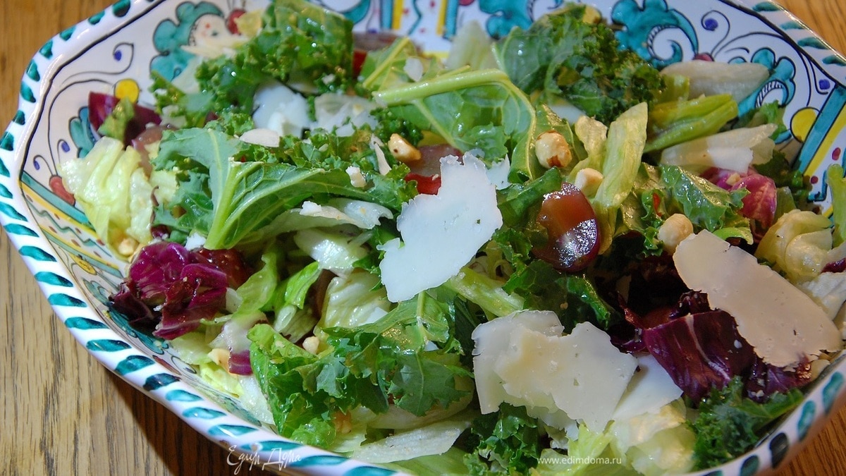 Салат с виноградом, фундуком и сыром