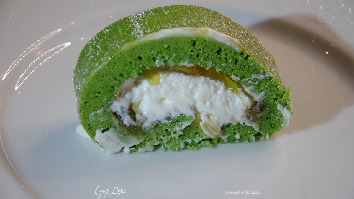Бисквитный рулет с апельсиновым джемом и взбитыми сливками