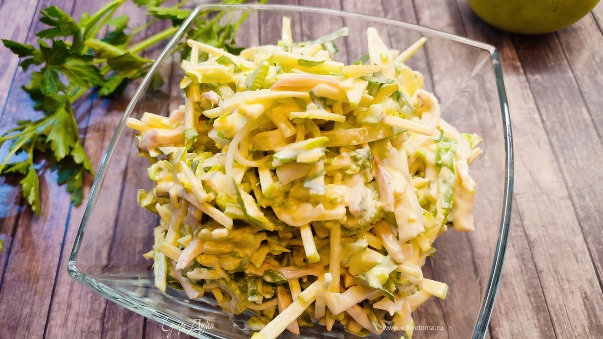 Яблоко берите кислое. Его надо очистить от семян и нарезать соломкой. Полить лимонным соком, чтобы не потемнело. - Шаг 2