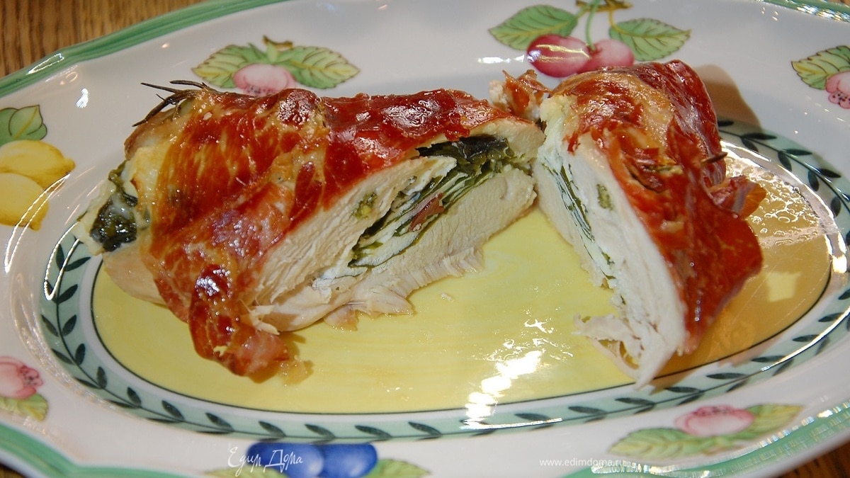 Филе должно быть комнатной температуры. Вместо рикотты можно взять некислый творог, а вместо шпината — петрушку или другие травки, чтобы была радостная зеленая составляющая.